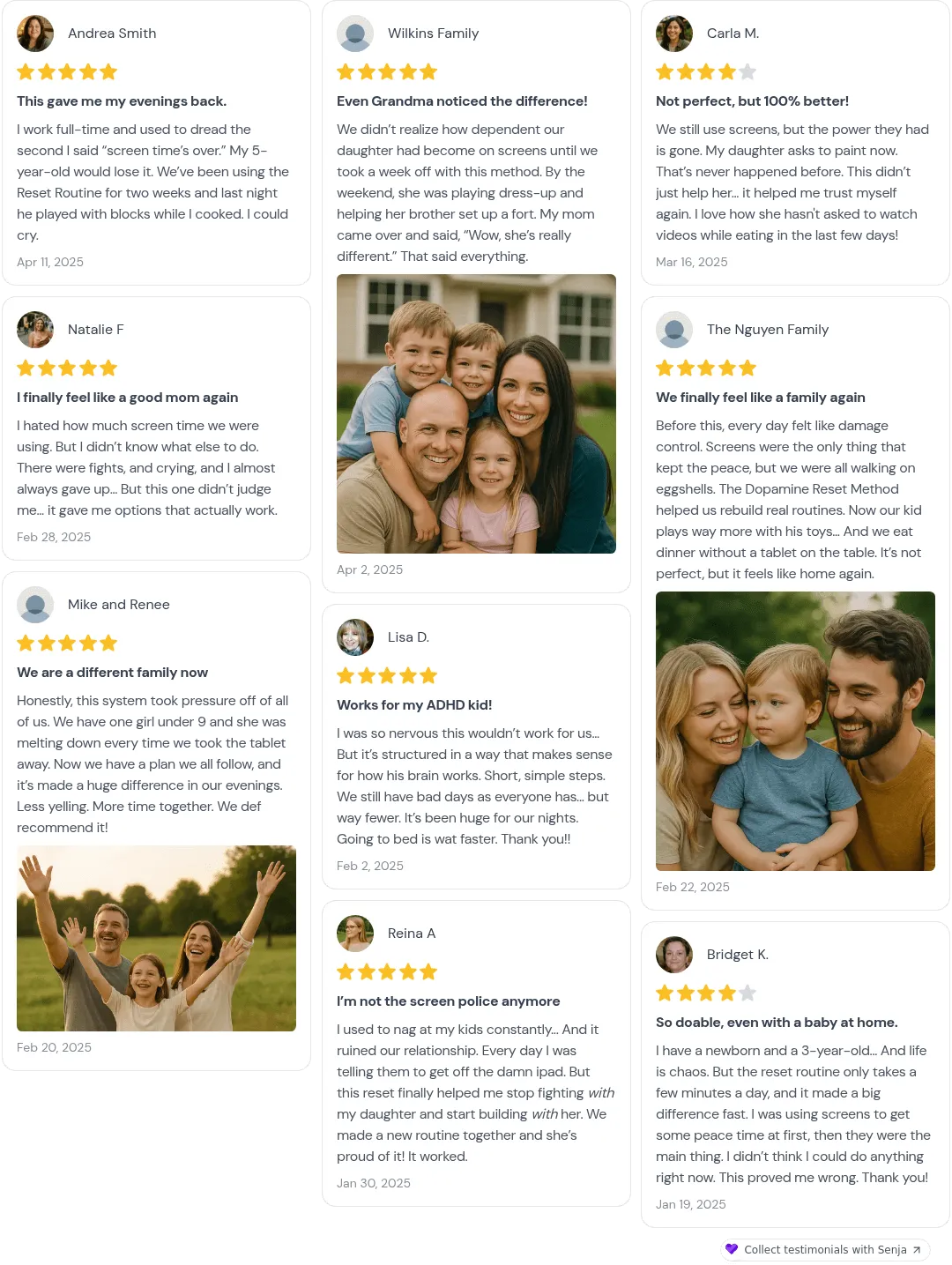Many parents using the Dopamine Reset Method have children with ADHD, ASD, or sensory sensitivities. The routines are flexible, calming, and grounded in child psychology not punishment or discipline. Always consult your provider, but this is often a helpful complement to therapy.
