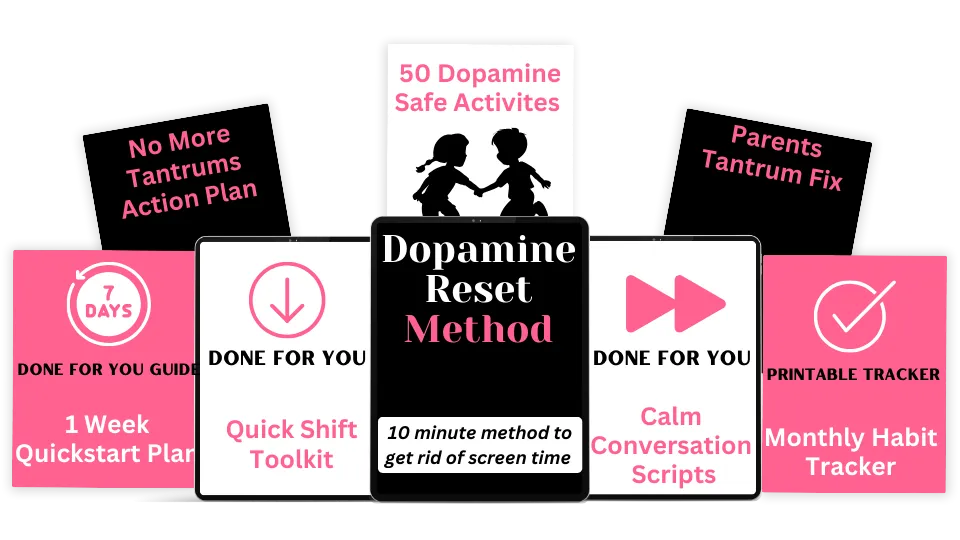The Dopamine Reset Method is designed for kids between 2 and 12 years old. That’s the age range where screen habits form fast and where routines can still be shifted with gentle, play-based strategies.